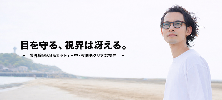 特定の波長をカットする特殊染料をレンズに練り込むことで、目に有害な紫外線をほぼ100%カット。