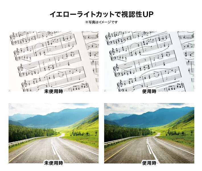さらに、人が最も眩しいと感じるイエローライトも効果的に軽減する機能を備えたブルーカラーレンズです。