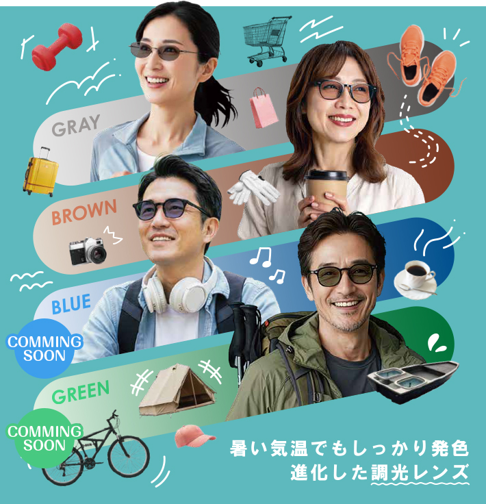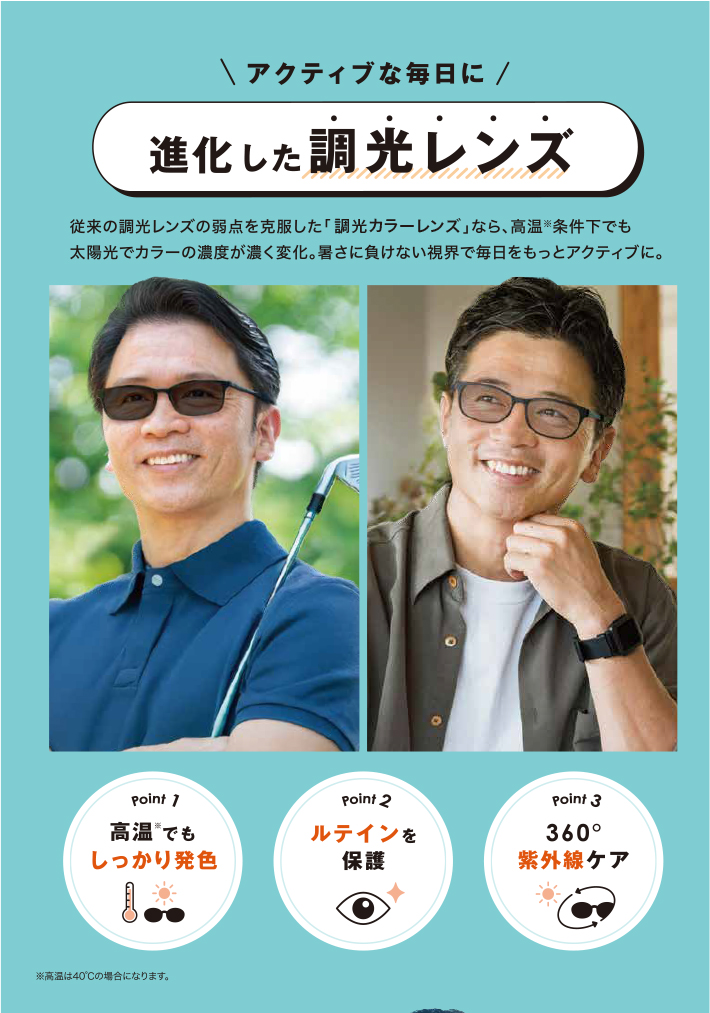 従来の調光レンズは、暑い環境では色が濃くなりにくいという弱点がありました。