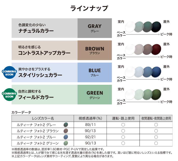 本モデルはその常識を覆し、「ベースカラーから発色する新しい調光レンズ」を実現。